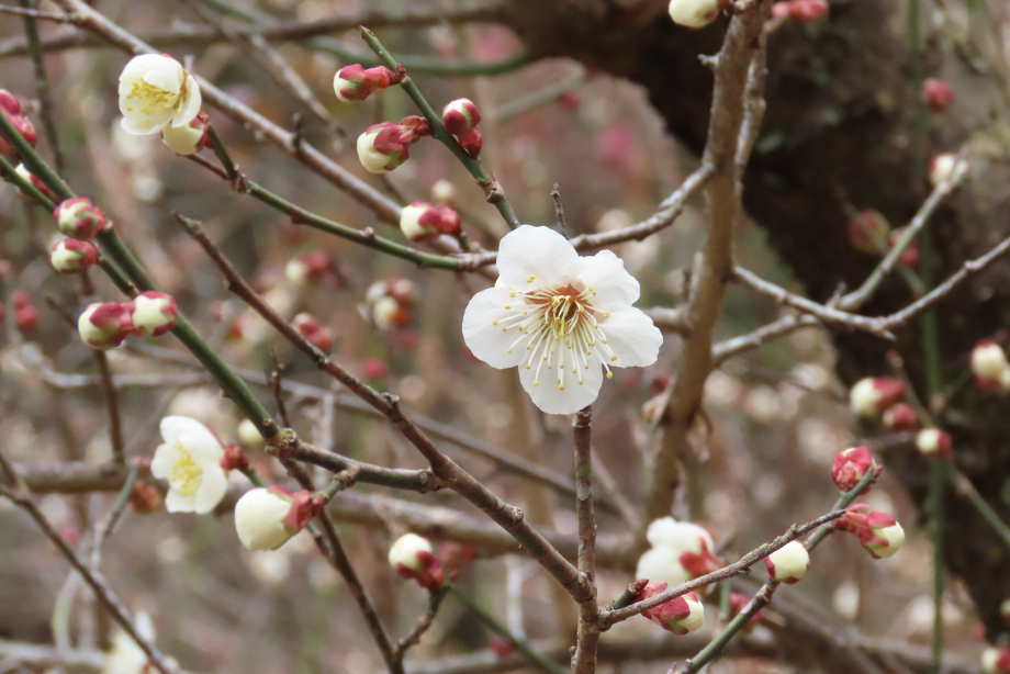 森の宝島にある梅の谷で梅の花が咲き始めました
