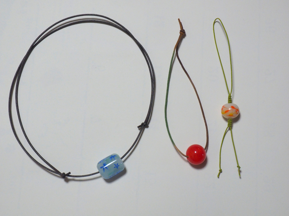 内容:こちらで作ったとんぼ玉を選び、アクセサリーやブレスレットなどに仕上げます。
