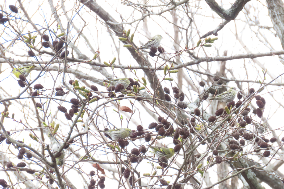 マヒワやヤマガラ、エナガの集団が