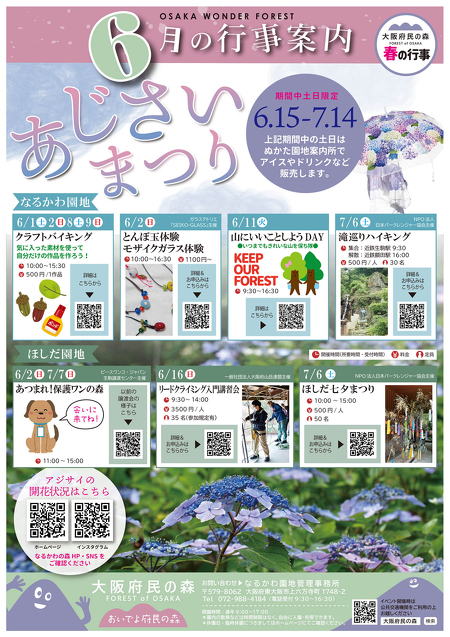 2024.05.20 【大阪府民の森】6月のイベント案内 イベント情報 大阪府民の森で6月に開催するイベントのご案内 【ほしだ園地】 6/2(日) 11:00~15:00 あつまれ!保護ワンの森 保護犬譲渡会 前回の様子はこちら 6/16(日)9:30~14:00 リードクライミング入門講座 詳細はこちら 7/6(土)10:00~15:00 ほしだ七夕まつり 詳細はこちら 7/7(日)11:00~15:00 あつまれ!保護ワンの森 保護犬譲渡会 前回の様子はこちら ※ほしだ園地・6月のキッチンカー出店予定はこちらから →→ ☆ 【なるかわ園地】 6/1(土)6/2(日)6/8(土)6/9(日)10:00~15:30 クラフトバイキング 詳細はこちら 6/2(日)10:00~16:30 とんぼ玉体験モザイクガラス体験 詳細はこちら 6/11(火)9:30~16:30 山にいいことしようDAY 詳細はこちら 7/6(土)9:30~16:00 滝巡りハイキング 詳細はこちら FOLLOW US 記事一覧