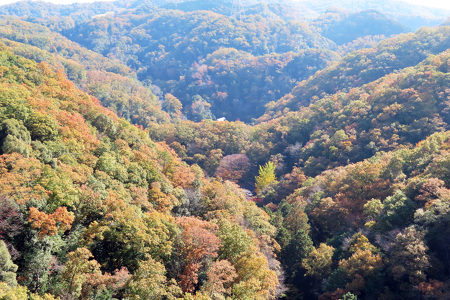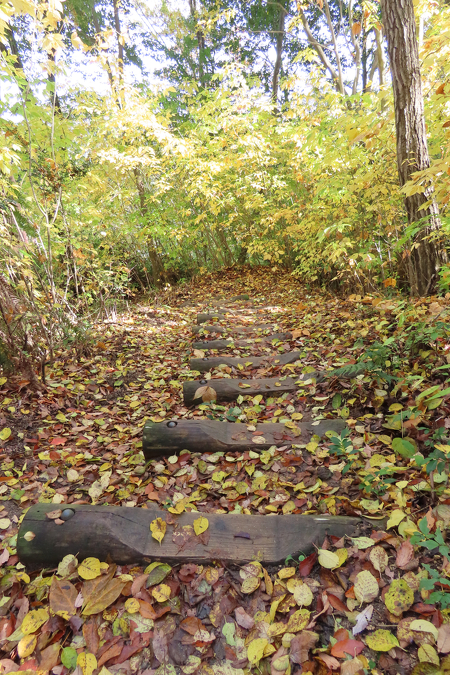星のブランコから見下ろす樹々は紅葉ではなく黄葉する植物たちです。現状は少し黄色くなってきたかな、といったところ。