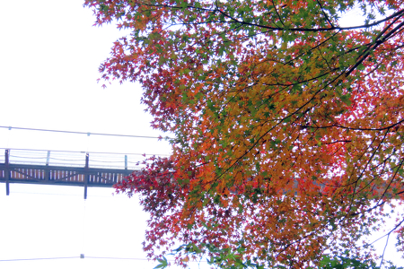 小屋のデッキにかぶさるように育つモミジはグラデーションがとても美しく、日に透けるとより一層美しさを増して見えます。