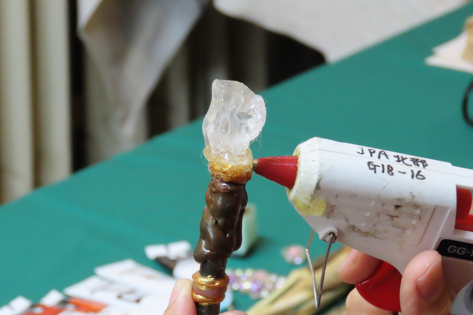 やすりをかけたりグルーガンで模様を作ったり宝石をくっつけたり。
