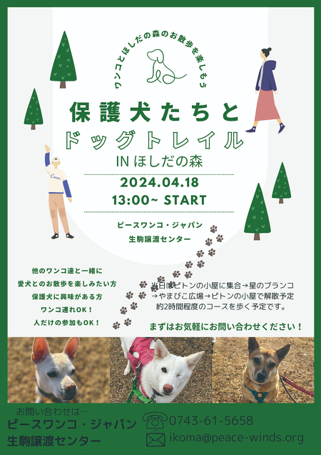 お問い合わせ:イベントに関するお問い合わせは”生駒譲渡センター”までご連絡ください。