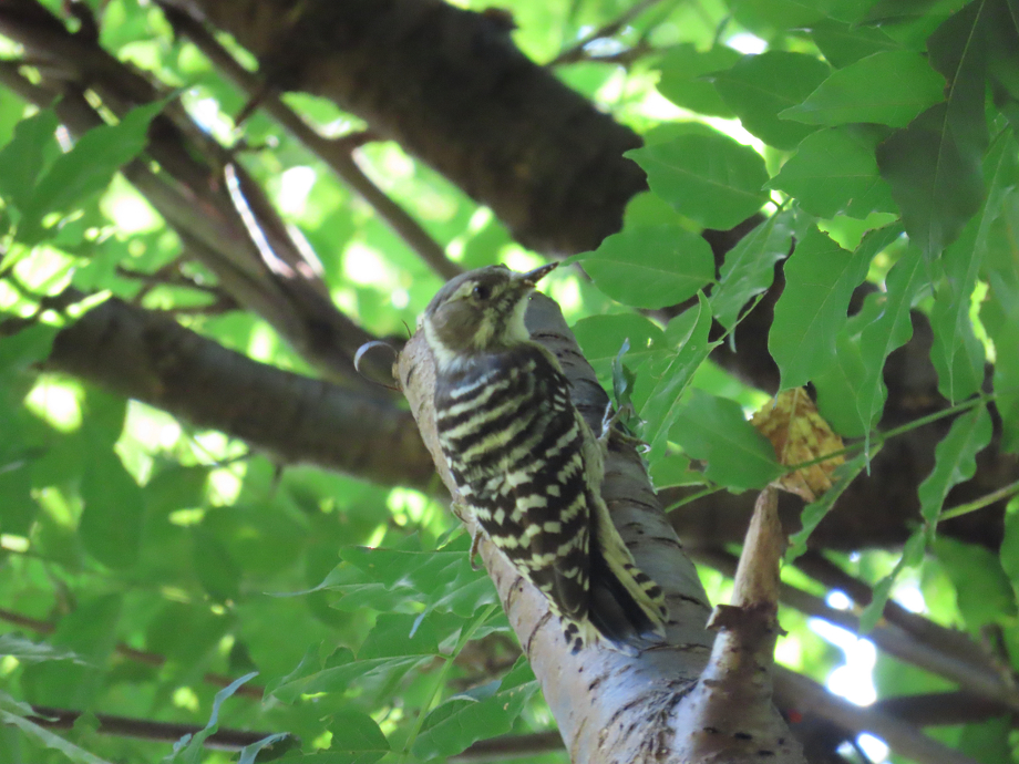 2022.08.30 コゲラ 生き物さんさく ほしだの森 2022/08/23撮影 ほしだ園地を散策中に頭上から「ギー」という声が聞こえたらそれはきっとコゲラです。つがいや家族で行動するため、声でお互いの位置を確認し合っています。 日本に生息するキツツキのなかでもっとも小さくスズメくらいの大きさ。 さほど警戒心は強くないので声のしたあたりを探せば、ちょろちょろと樹上を上下移動するコゲラを見つけることができます。 特に冬季は比較的簡単に見ることができる野鳥のひとつです。 FOLLOW US 記事一覧