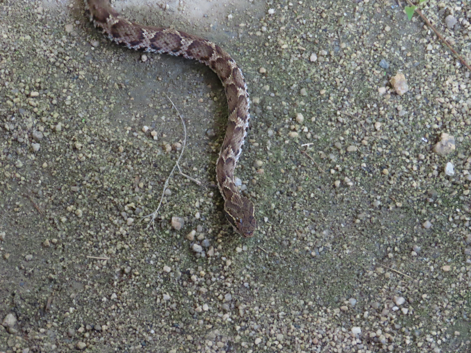 2022.08.30 ニホンマムシ 生き物さんさく ほしだの森 2022/08/23撮影 毒蛇なので見つけても絶対に近寄らないでください。 三角形の頭と銭形模様が特徴で、人が近づくと頭を持ち上げ尾を振って威嚇してきます。 水場によく出没しますが時折やまびこ広場などにも現れます。ベンチの下などの湿った暗いところに潜んでいることが多いようです。 FOLLOW US 記事一覧