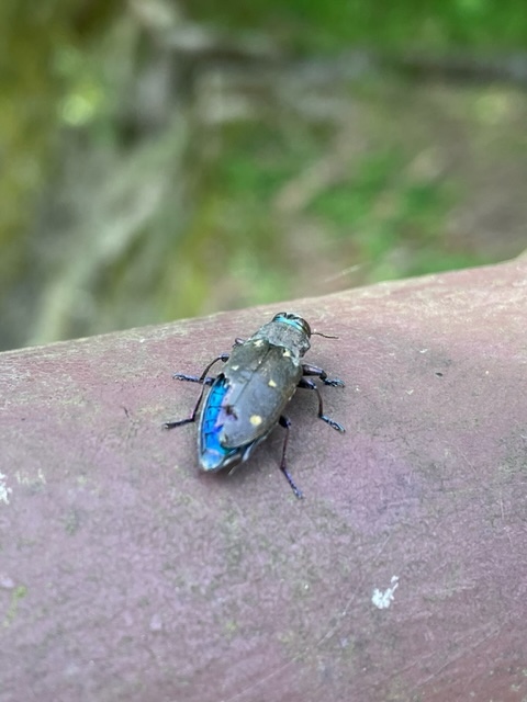 2022.09.07 オオムツボシタマムシ 生き物さんさく ほしだの森 2022/07/31撮影 翅が欠けて、タマムシ特有の金属光沢が見えていなければ気づけなかった珍しいタマムシです。 体長2cm程とヤマトタマムシと比べると小型。翅を広げると鮮やかな青緑色に輝きます。 FOLLOW US 記事一覧