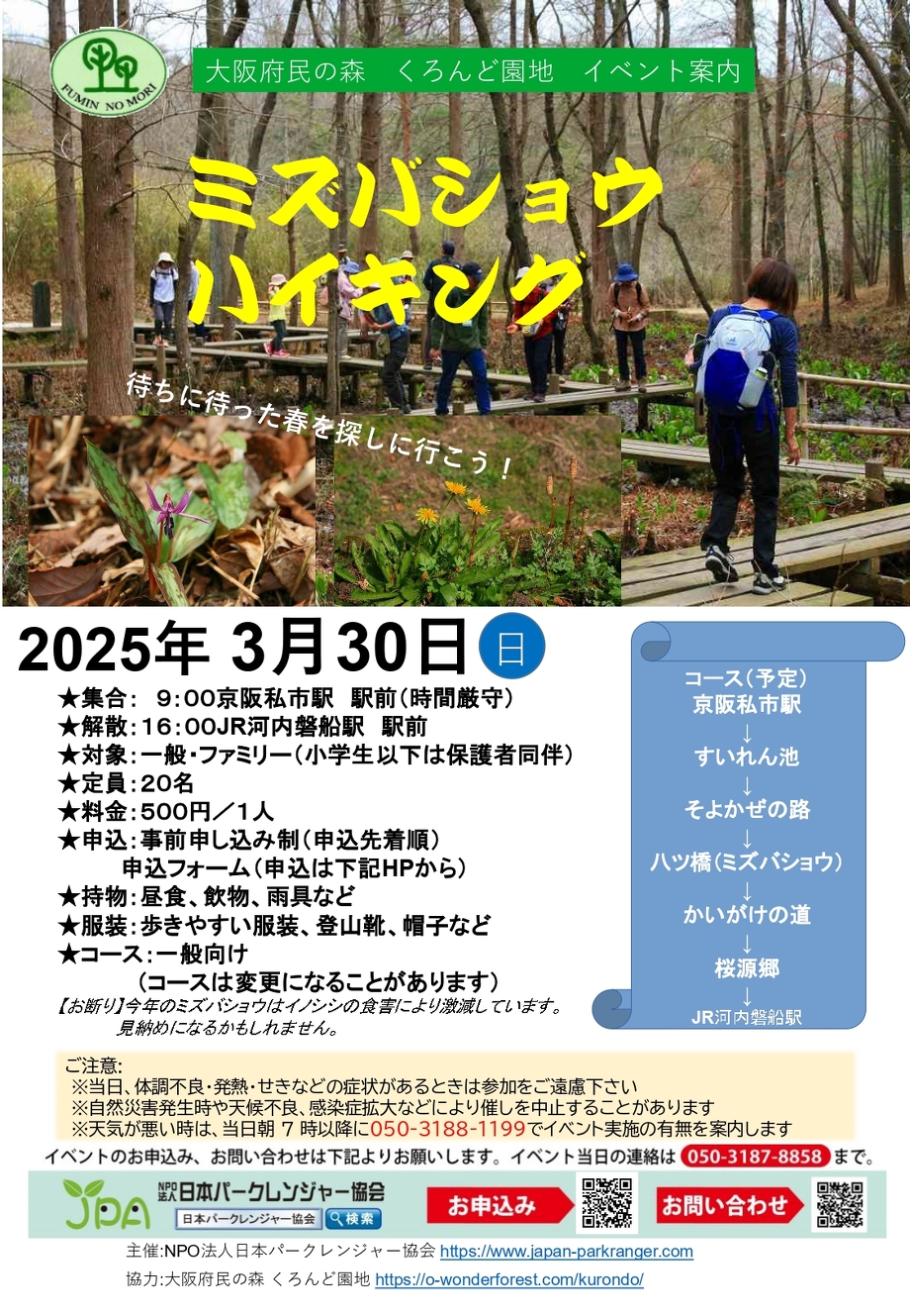 2025.02.13 【開催終了】ミズバショウハイキング イベント情報 くろんどの森 日本パークレンジャー協会さん主催のイベントです。 春のくろんど園地を楽しむミズバショウハイキング、ぜひ参加してみてください! お申込みはこちらから↓↓ お申し込みはこちら FOLLOW US 記事一覧