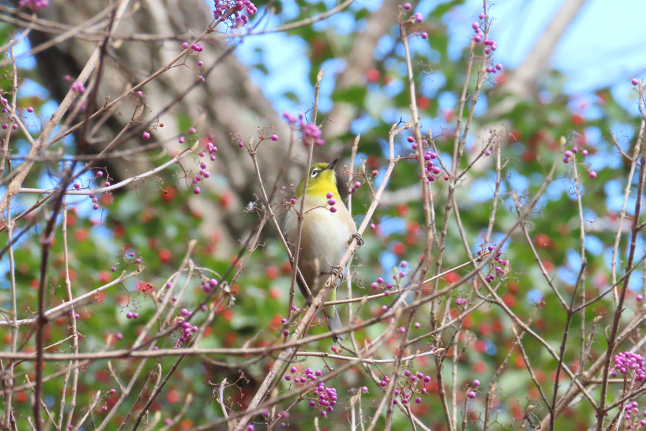 ヤブムラサキの葉は黄色へ、多くは落葉しています