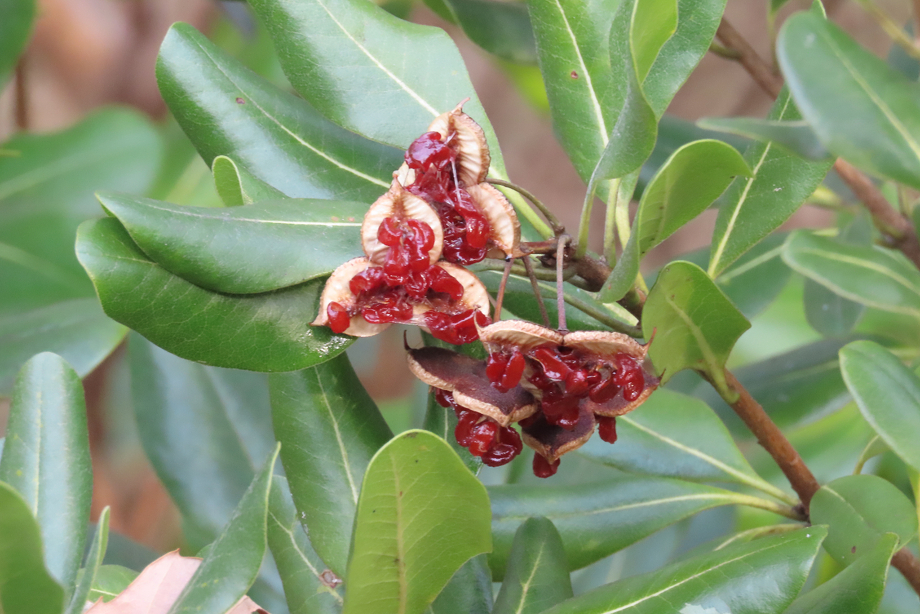トベラの実が熟し果実が3つに裂ける季節となりました