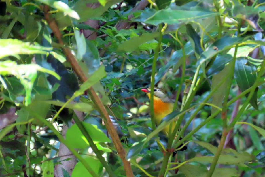 2022.10.02 ソウシチョウ 生き物さんさく むろいけの森 2022/10/02撮影 真っ赤なくちばしがチャームポイントの美しい鳥。藪のなかにいることが多く、特に笹薮が大好きです。 藪のなかではジッジッと地味な鳴き声ですが、さえずりは高く軽いよく通る声で鳴き方も多彩です。 見た目よし声よしで中国ではポピュラーなペットとして愛されており、日本でも昔はどのペットショップにもいたそうです。 在来種のオオルリやウグイスを駆逐してしまう恐れがあり、現在では侵略的外来種ワースト100選定種になっています。 FOLLOW US 記事一覧