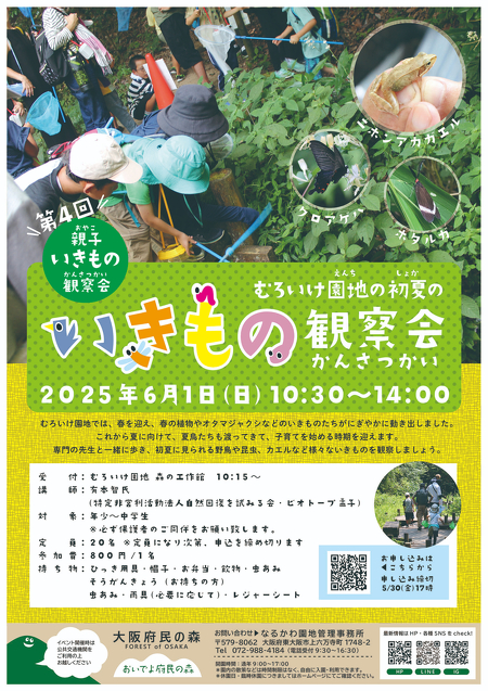 【開催終了】第4回親子いきもの観察会「むろいけ園地の初夏のいきもの観察」