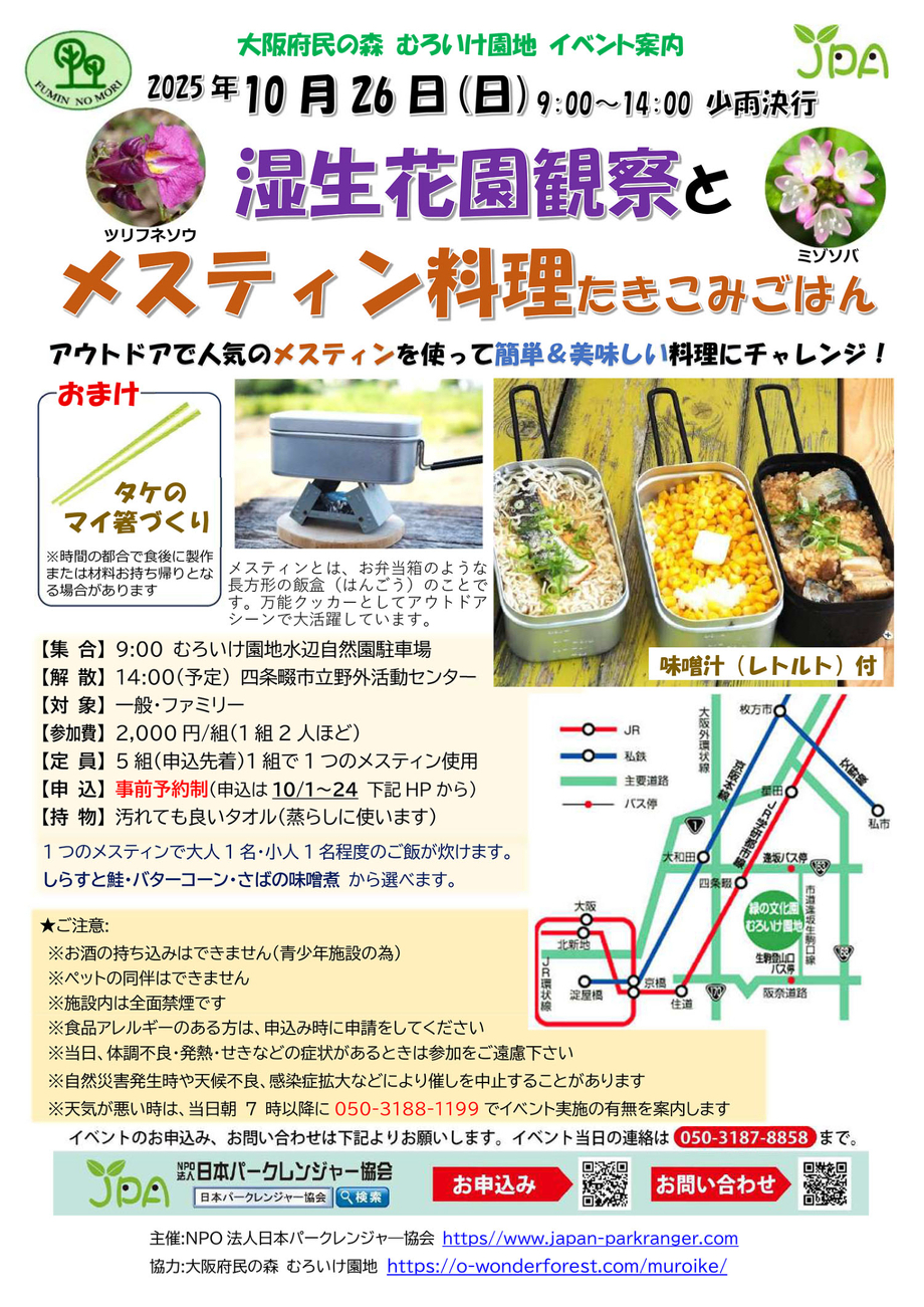 その他注意事項は案内チラシ、パークレンジャー協会のHPでご確認ください。