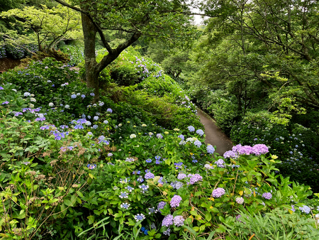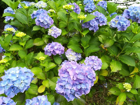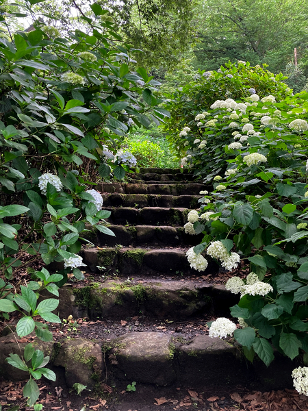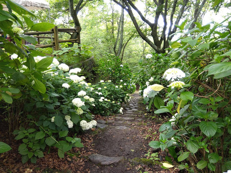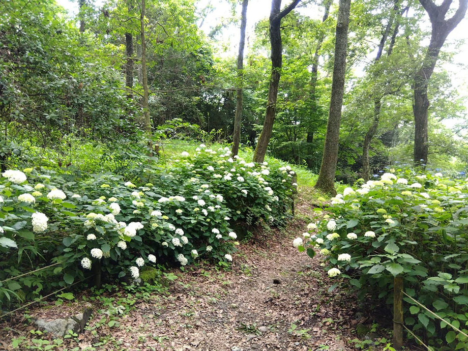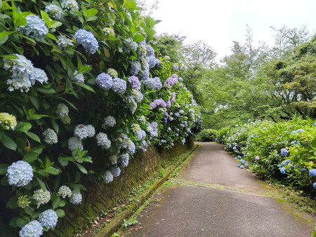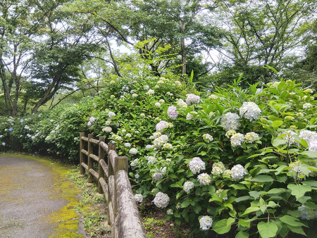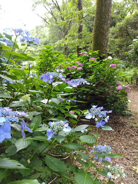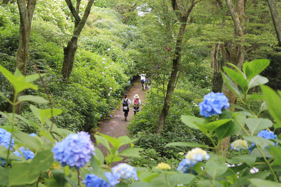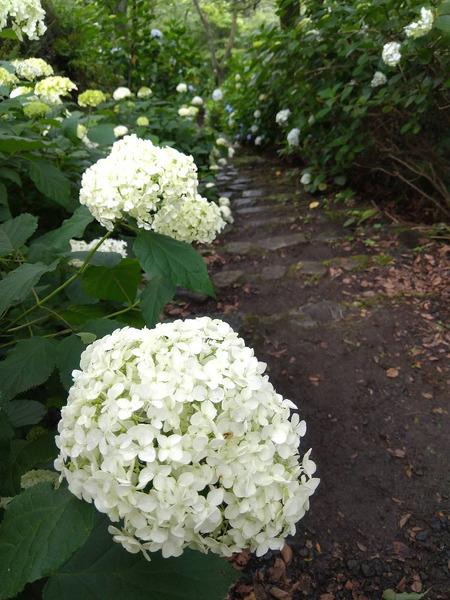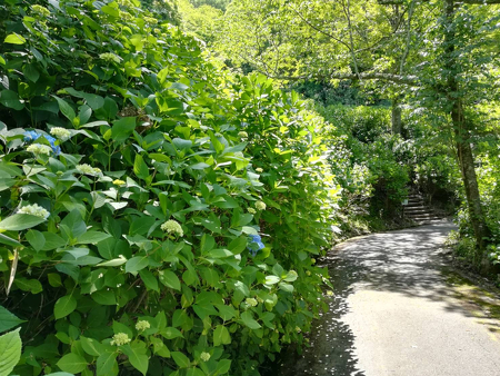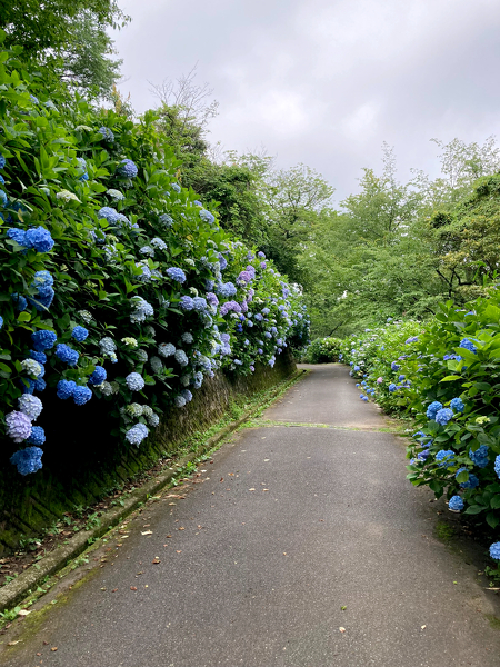 案内所から欅の広場まで、道まで飛び出すようにアジサイが咲いておりとても綺麗ですよ。