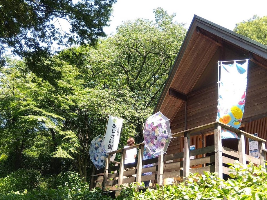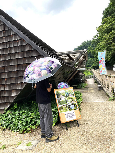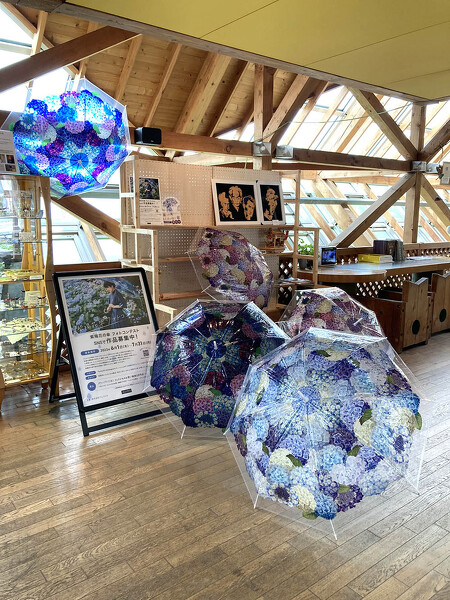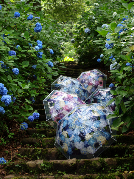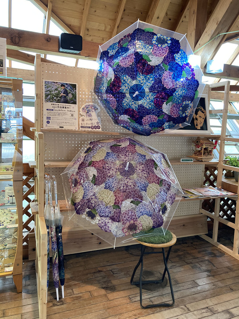 また、通販サイト フェリシモさんのとっても素敵な紫陽花柄の傘「雨空に咲きこぼれる 紫陽花の傘」を設置・貸し出しもしております。