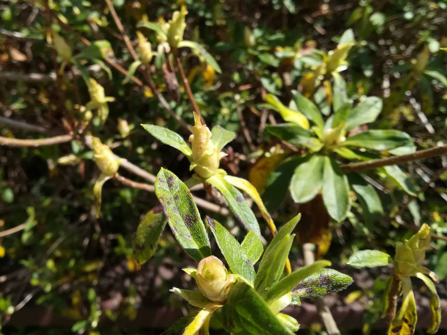 最後につつじ園のツツジの様子です。本日少し色付いた蕾も見られたようです。今年は例年より少し早い開花になるかもしれません。