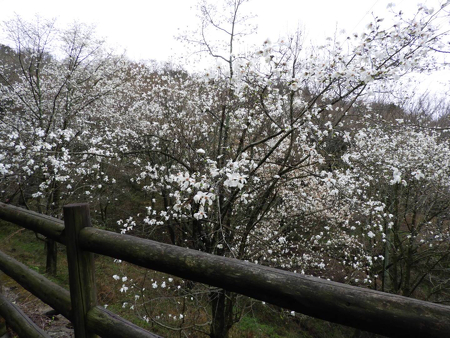 なるかわ園地の駐車場にもコブシが植えられています。ゲートから下の駐車場を通り過ぎ、上の駐車場に向かうカーブの途中に植えられていますので、カーブに入りましたら左手にも注目してみてください。このコブシはこぶしの谷のコブシと違って、小さ目のシデコブシという種類のもの。駐車場の位置もこぶしの谷に比べると随分下なので、蕾もいくつか開き、柔らかに咲きだしています。上まで見に行くのはちょっとなぁ…というお客様は、駐車場近辺のシデコブシをお楽しみ頂ければと思います^^