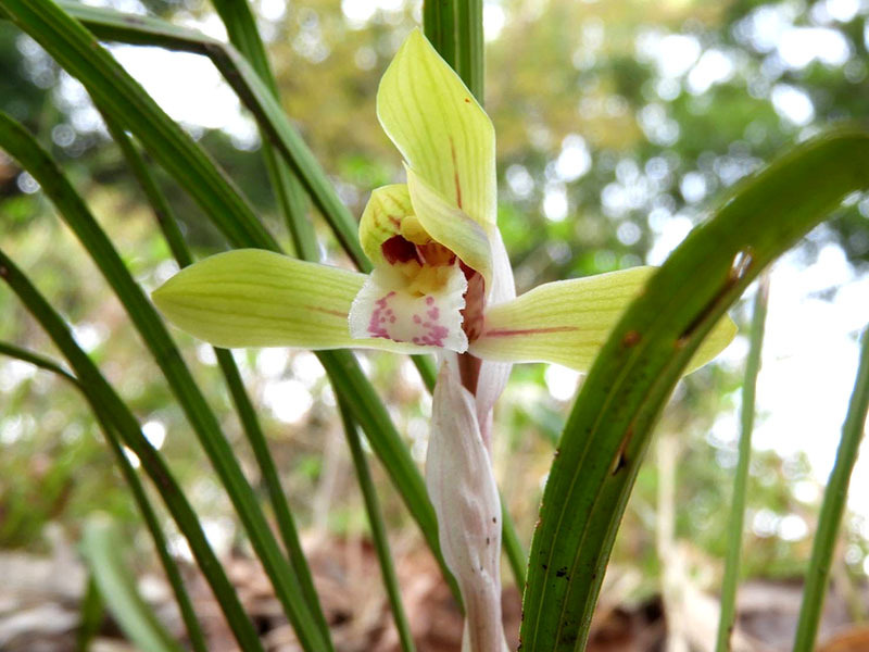 綺麗に咲く春蘭にも出会ったようです。春蘭は光合成の他に菌からも栄養を得ている部分的菌従属栄養植物です。花言葉「控え目な美」。下向き気味に咲いていますので、発見しにくいかも知れません。