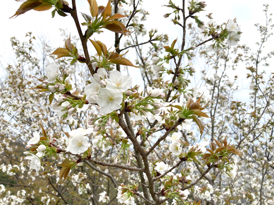 園地内は様々な種類の桜があり、色の違いや葉っぱの出方の違いを見つけるのも楽しいです。