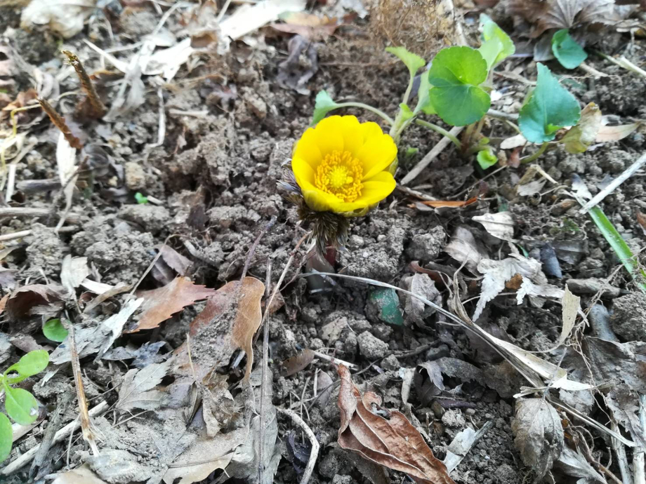 こちらは福寿草。今年も咲いてくれていたようですが、その数は少なかったそうです。黄色の色合いが春らしい気分にさせてくれますね。