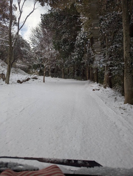 こちらは数日前より凍結のため通行止めになっているみずのみ道の様子