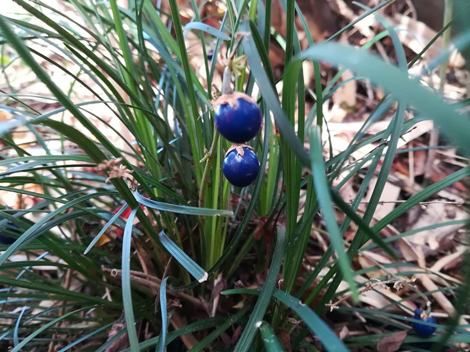 こちらはジャノヒゲ(写真は12/9撮影)。ハイキングコースの色々なところで出会いますが、綺麗な青い実を付けています。実は割と長い期間鑑賞を楽しめるようです。
