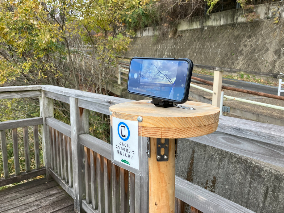 撮影スポットには、スマホを設置することが出来る台が用意されています。磁石でスマホを固定でき、角度も少しですが変えることができます。