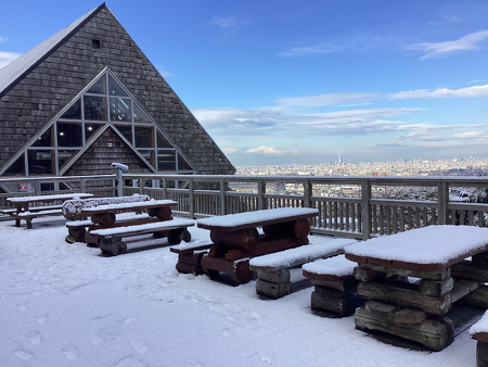 今朝の時点でなるかわ園地山頂のぼくらの広場付近の積雪は約5cm!!