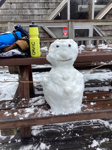 ベンチの上に積もってる雪を見ると積雪の深さがよくわかります。