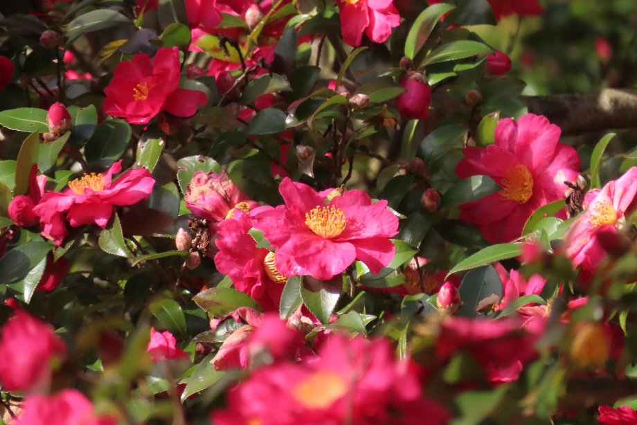 山茶花は満開に、椿は咲き始めたところです