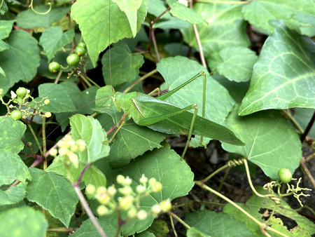 バッタ目ツユムシ科のヤマクダマキモドキ。