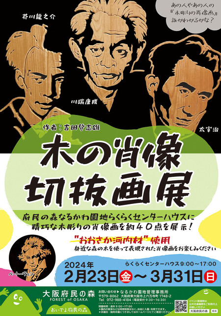 なるかわの森・らくらくセンターハウスにて、『木の肖像切抜画展』『なるかわフォト展』を同時開催致します!