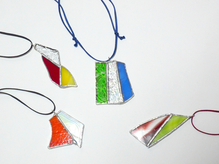 色ガラスの中からお好きなものを3個まで選んで、ハンダこてを使ってネックレスに仕上げます。