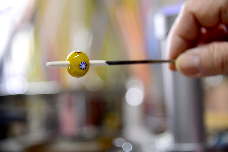 ガラス棒をバーナーを使って溶かし、ネックレスかストラップを作ります。