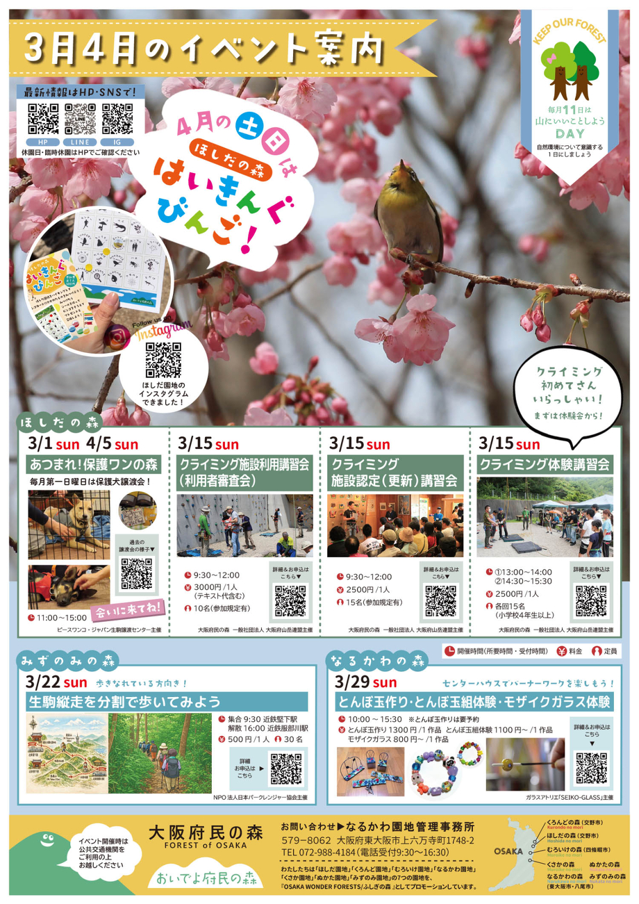 大阪府民の森で3月~4月に開催するイベントのご案内